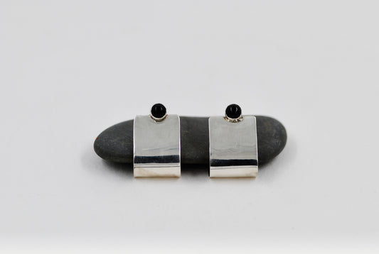 Onyx & Sterling Flat Half Round Earrings